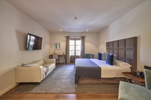 Diese elegante Senior Suite mit privilegiertem Blick auf die Plaza Juan Carlos I. bietet auf 42 m² Platz und Komfort für zwei Personen. Das gemütliche Wohnzimmer, das in das Schlafzimmer integriert ist, schafft eine entspannende Atmosphäre, während das große, unabhängige Badezimmer mit einer Badewanne und einer Regendusche ausgestattet ist. Eine Excellence-Suite, in der man Palma mit Stil und Wohlbefinden genießen kann.