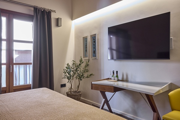 Die perfekte Balance zwischen Design und Schlichtheit macht diese Standard-Suite zu einem idealen Rückzugsort für Geschäfts- und Urlaubsreisende. Mit 28 m² und einer maximalen Kapazität für 2 Personen bietet sie ein Kingsize-Bett oder zwei Einzelbetten, je nach den Bedürfnissen des Gastes. Die maßgefertigten Möbel, der Schreibtisch und der Safe bieten Funktionalität und Komfort und schaffen einen ruhigen und einladenden Raum im Herzen von Palma.